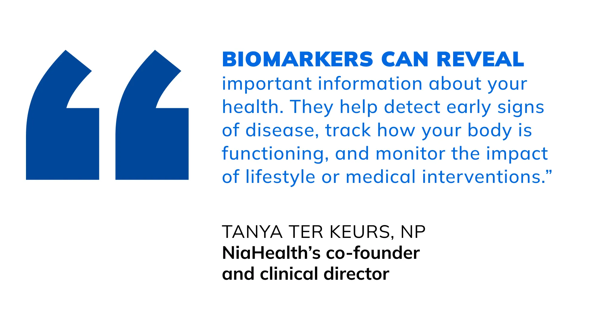 “Biomarkers can reveal important information about your health. They help detect early signs of disease, track how your body is functioning, and monitor the impact of lifestyle or medical interventions,” says Tanya ter Keurs, Nurse Practitioner and NiaHealth’s Co-Founder and Clinical Director.