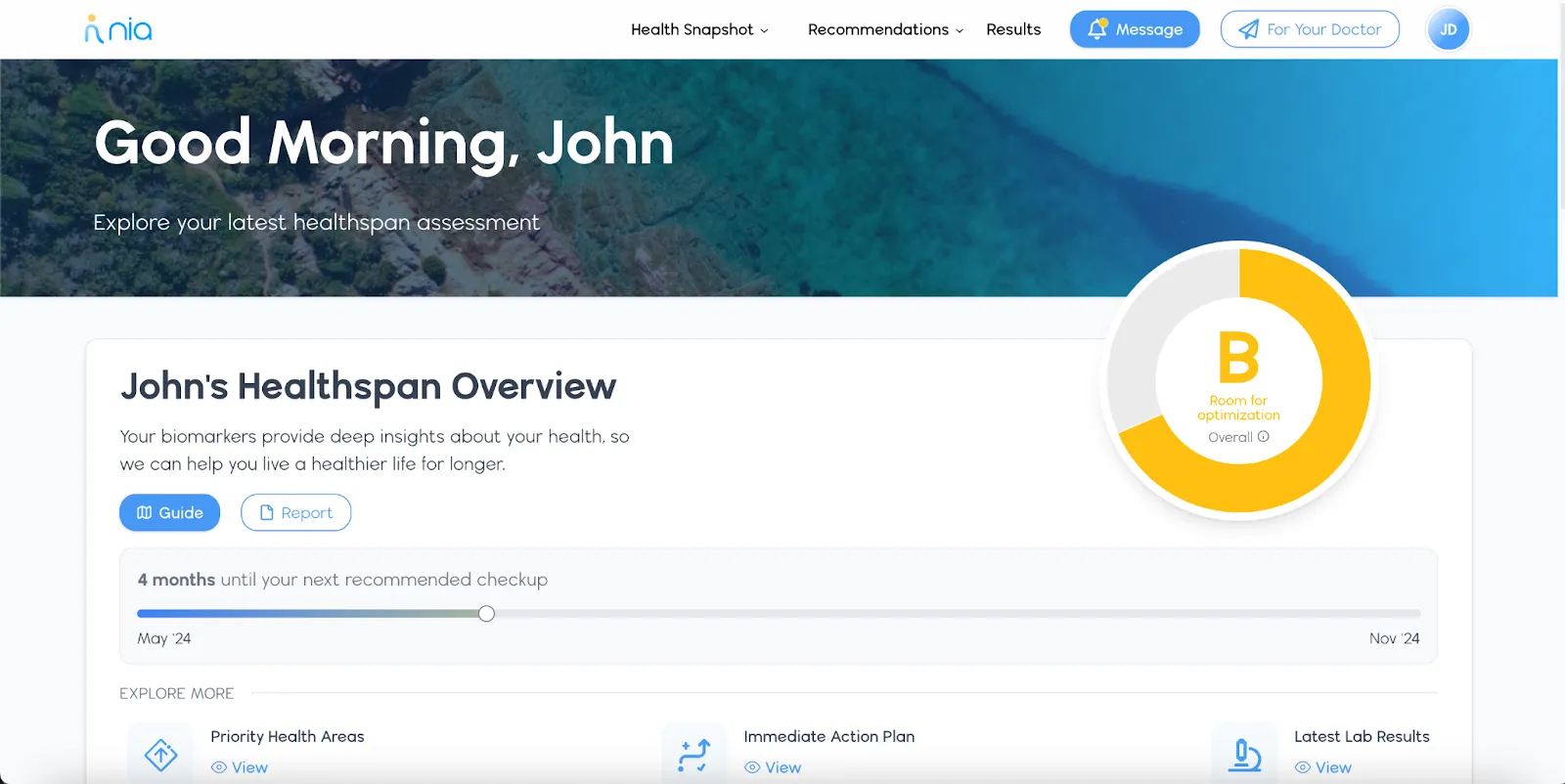 As we continue to refine and expand our dashboard's capabilities, we remain committed to our core mission: making healthcare management as seamless and effective as possible. With NiaHealth, you're not just receiving a health report; you're gaining a personalized, interactive guide to optimal well-being. We invite you to explore your dashboard and take the first steps towards a healthier, more informed you.