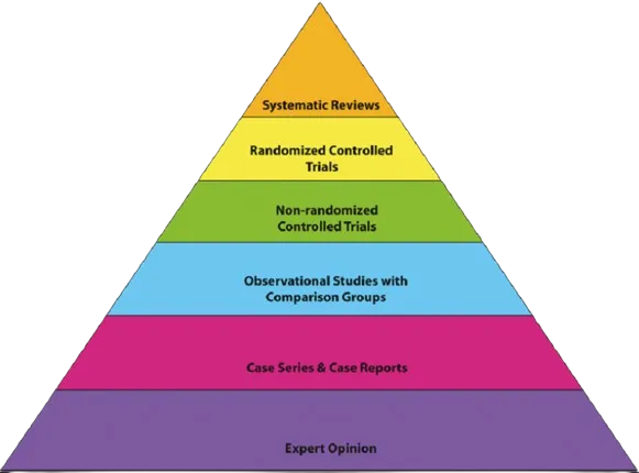 The best source of evidence in this hierarchy are systematic reviews. These are large and comprehensive analyses which combine data from multiple other studies. There are set protocols for conducting a systematic review which include requirements to explain why studies were included or admitted and report on the overall quality of the evidence. The best systematic reviews will interrogate the data in the studies they include to identify any potential sources of bias or inaccuracy before providing a conclusion.